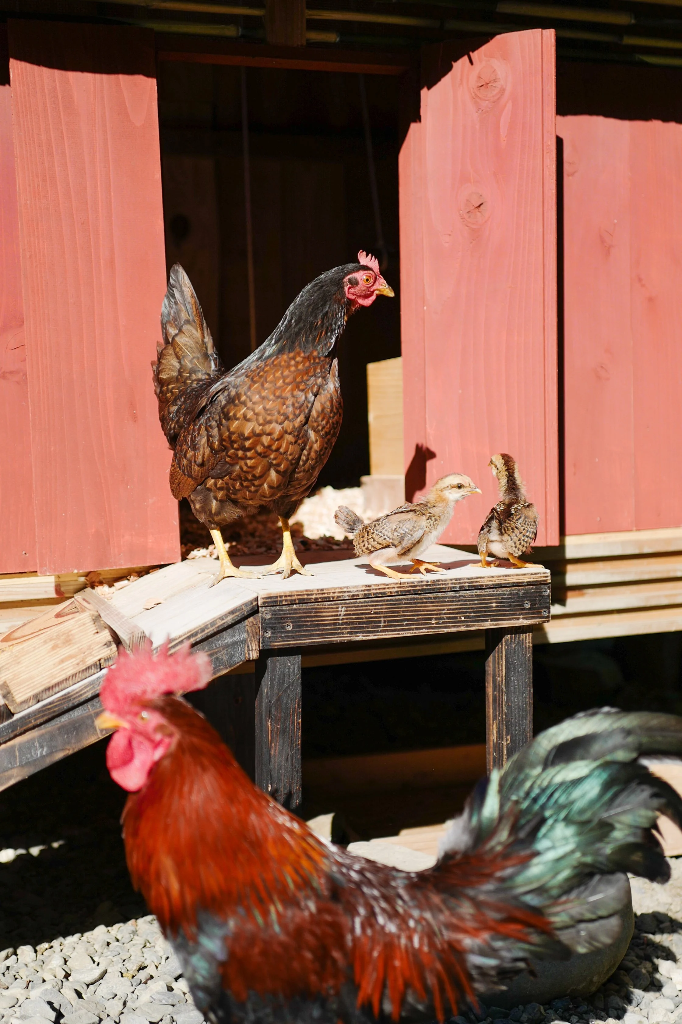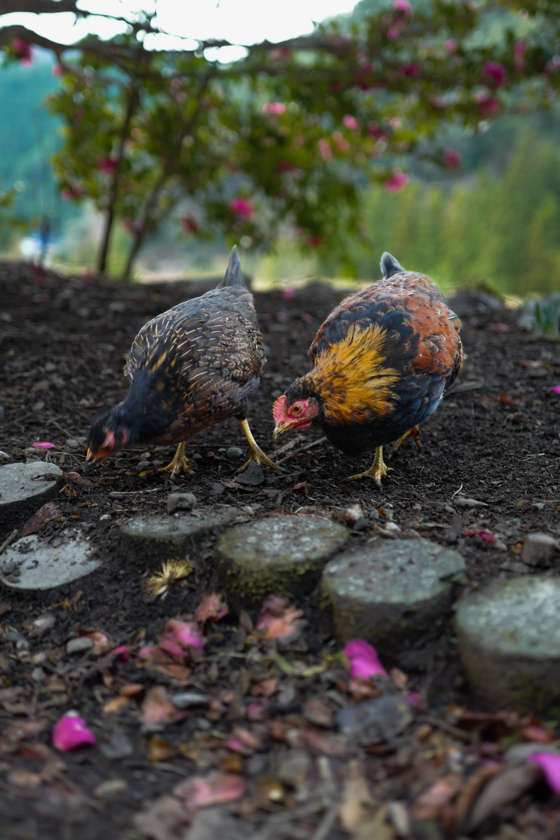 We are 2 of 300 Ryujin Chickens left in the world, and mom and dad to many chicklets. Our mission in life is to eat a lot, fertilise, and lay many eggs so that our offspring may fertilise Ryunohara and rid the place of unsavoury insects (savoury to our palates of course).